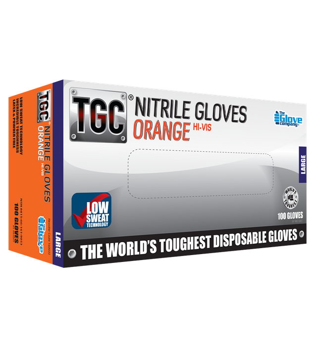 TGC® Hi-Vis Orange Nitrile Disposable Gloves