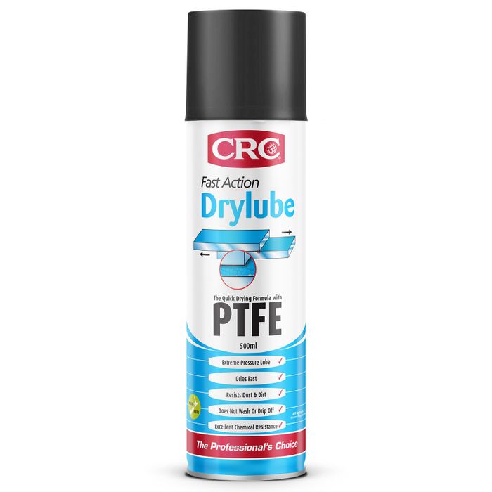 CRC Drylube with PTFE prevents sticking reducing friction, heat and wear with a very low coefficient of friction over a wide temperature range. It prevents galling or seizing and will not melt, freeze, run, pool or contaminate in-process materials.