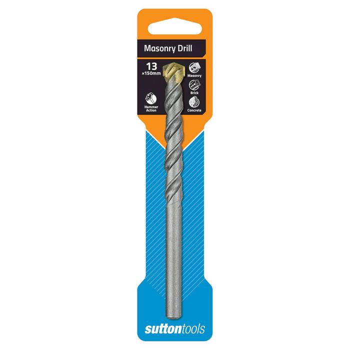 Sutton Tools masonry drill bits are tradesman quality. Ideal for use in natural and artificial stone, masonry, brickwork & concrete. Tungsten Carbide percussion tip with semi-positive profile for 25% faster drilling than comparable product. The rolled double spiral flute provides greater dust extraction, for up to three times drill life.
