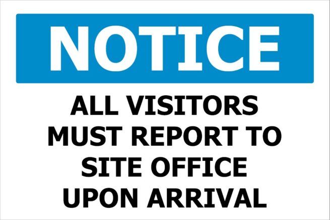 - Notice All Visitors Must Report to Site Office Screenprint on PVC 340x240mm