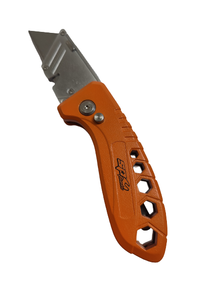 Lightweight folding lock-back design with easy push-button opening and closing for safe use and storage