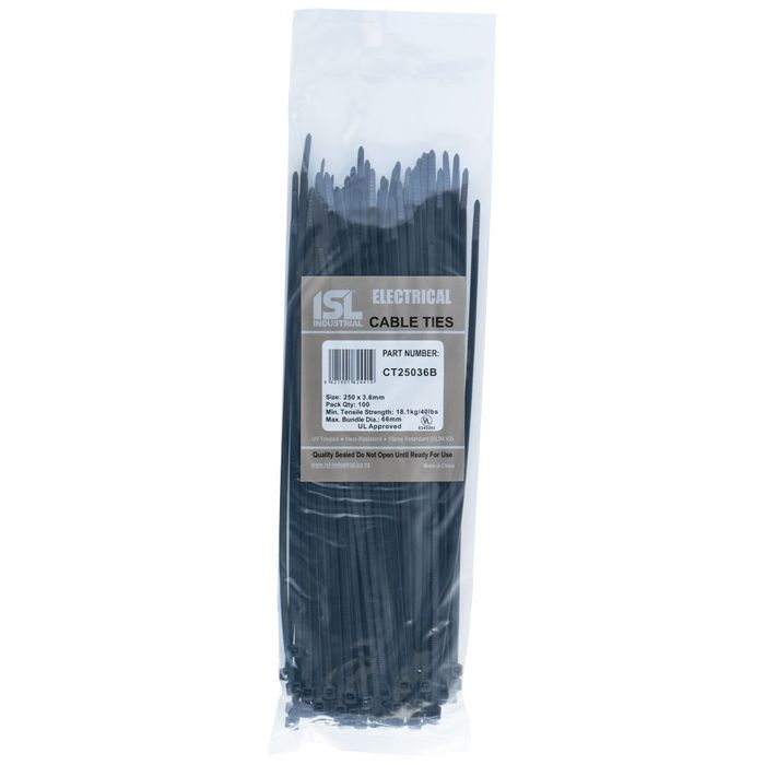 - ISL 250 x 3.6mm UV Nylon Cable Tie - Blk 100pk