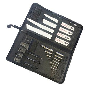 This kit includes 3 x threaded spade bits, 10 x HSS drill bits, 7 x impact torsion power bits, 4 x reciprocating blades and 2 x multi-tool blades.