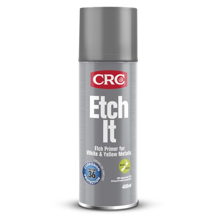 CRC Etch It is a single pack etch primer with excellent adhesion to bare metal. It is formulated for etching and key-coating bare aluminium, stainless steel, brass, copper and galvanised metal surfaces and forms a tenacious key coat to provide adhesion for a paint system.