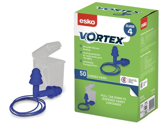 - Esko Vortex Blue Reusable Corded Class 4, SLC80: 22dB Earplugs 50